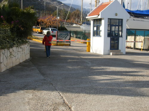 setter kurs utover mot hovedmoloen til marinaen. Vi runder da baksiden av båtopplagringsplassen og passerer fiskebåthavnen.