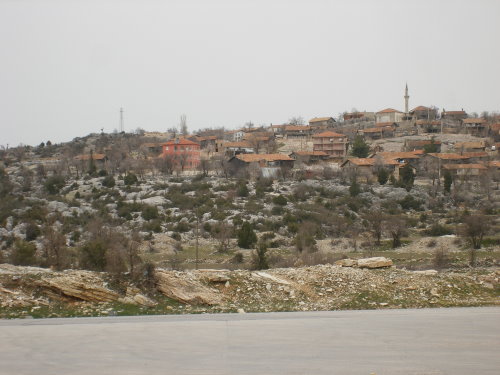 Kl. er blitt 0800 og vi legger i vei. Vi passerer Kemer og Antalia, svinger østover mot Manavgat og tar veien nordover til Konya. Vi tar et pit-stop i nærheten av Giris ved en av de få veikroene som finnes. Vi er nå allerede i ca 1000 meters høyde. De grå landsbyhusene går nesten i ett med landskapet. Det er bare de røde taksteinene som skiller seg ut.