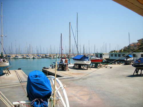 Gradestokken viser 42,6 C og ikke egnet til hardt arbeid. Likevel er jeg her for å sette i gang med litt vedlikehold, vasking og reparasjoner. Dette for å få båten på vannet igjen så fort som mulig når vi begge kommer tilbake hit i slutten av august. Får håpe det i hvert fall blir et lite vindpust om litt.