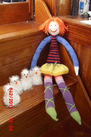 En ballerina filledukke har fått fast plass i sofakroken. Nye eggevarmere til påske er også så godt som ferdig laget.