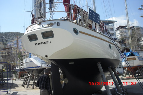 S/y Tayana har vært en tur på land og skinner nypolert og med nytt bunnstoff er båten klar til nye seilturer.