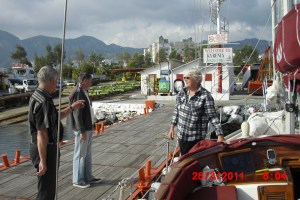 Heldigvis går det greit uten at det er nødvendig å gå i vannet. Vi ankommer Finike kl 22.00 om kvelden 29. mars. Det er mørkt men siden vi er lokalkjente i området, byr det ikke på problemer å legge til.