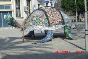 Vi forlater borgen for treff oppe på torget i Girne, hvor denne framtoningen står.