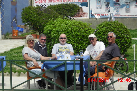 Så er det nok en gang tid til å si adjø. Vi har store byggeplaner hjemme i Norge og tar farvel med våre svenske venner Ulla og Sune samt Nils Todal og Lasse som kommer innom på vei til Kas hvor båten ligger.