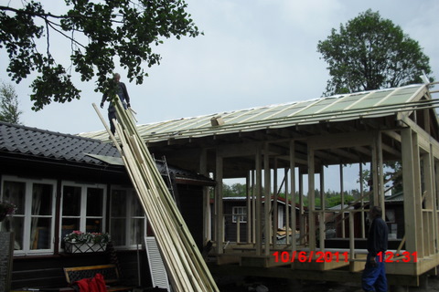Første vegg er på plass og noen har kanskje også observert at vi har fått besøk av Torhild og Tor (Tayana). Synd vi hadde det så travelt denne gangen, men vi får gjøre det godt igjen siden, når bygget er ferdigstilt.