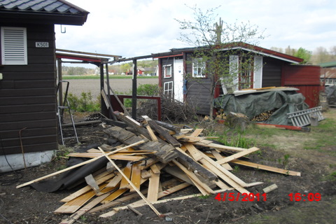 Ja, nå skjer det saker og ting. Endelig kan man begynne å bygge etter en lang rivningsperiode samt felling av trær. Flere conteinerlass med gamle materialer, plater og ikke minst vrakisolasjon blir sendt på dynga. Men denne form for isolasjon i huset var det ikke rart vi kjente nordavindtrekken svært godt i vinter.