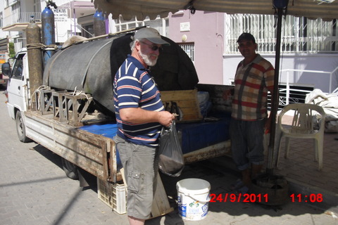 Men vi glemte nesten det aller viktigste. I morgen søndag er det felles grilling på marinaen og vi har tenkt å grille fisk. Det finnes innover i dalene rundt Finike mange fiskeopdrett. Spesielt ørret. Riktignok er den ikke rød i kjøttet som her hjemme, men smaker alldeles utmerket.