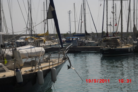 Det er forbausende mye vann mellom båtene, rett og slett glissent. Det skal bli vanskelig å få fyllt opp marinaen med båter kommende vinter. Vi vet at mange båter hat forlatt marinaen i år, bl.a. 6 svenske som overvintrer på Kreta. Finike marina bør nok senke grådighetsnivået en smule for å holde på oss seilere. For fem år siden betalte vi ca 13.000 kroner i årsleie her, i siste kontrakt forlangte man 26.000 kroner, altså en dobling på fem år.