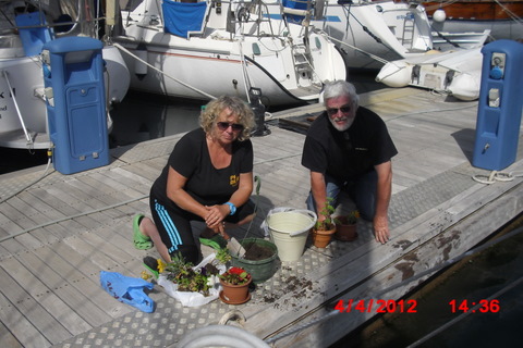 Ellers har varmen kommet og det er tid for utplanting av blomster. AM og Knut har derfor sin hagedag på brygga, mens jeg har viktige elektriske koblinger å utføre.