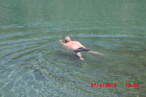 Sammen med Torhild og Tor og engelske Graham og Vicky, drar vil til Nuri beach for lunsj.
