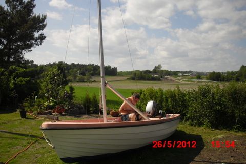 Som sagt det er mer enn nok å ta seg til. Men som noen husker så hadde vi noen spesielt flotte dager i pinsen. Lille «Svanen» lå i en trist forfatning bak hytta og trengte definitivt oppussing. Dette fikk hun, polert, bunnstoffet og rigget står hun klar til sjøsetting. I fjor fikk vi ikke anledning til test av båten, så det skal bli litt spennende med prøveseiling.