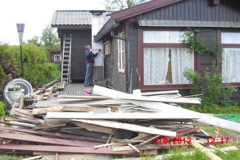 Vi har også gått løs på gamlehytta. Dører og vinduer skal vekk og erstattes med nye, av det isolerende slaget. Dessuten skal veggene fores ut ytterligere 5 cm, slik at vi får inn 15 cm isolasjon i veggene. Det betyr endringer av både bærebjelker og veggkonstruksjoner. Men det blir vel bra til slutt.