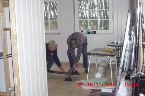 I mellomtiden må vi rekke å legge kjøkkengulv. Og med hjelp fra gode venner, rekker vi det, akkurat.