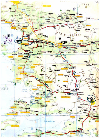 Dagen etter, 20.febr. er vi alle tre på farten videre nordvestover. Turen går via Mugla og vi tar til venstre ved Yatagar.