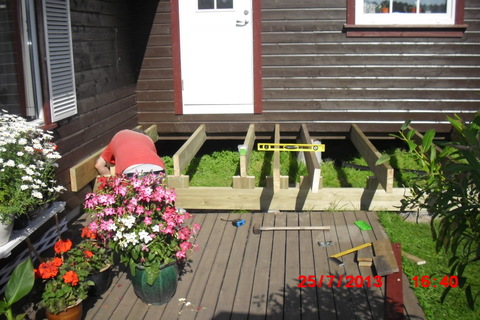 Det eneste som mangler nå er en skikkelig hovedinngang. Fremdeles er været strålende og i løpet av kort til er prosjektet i havn.