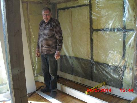 Gulvet forsynes med nytt undergulv og etterhvert kommer det panel på vegger og ny parkett.