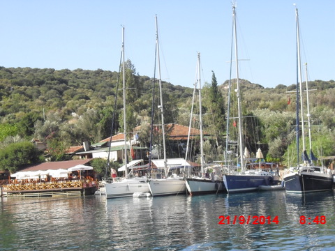 Denne ogangen drar vi sammen med Knut på Jacaranda. Denne gangen blir vi ikke lenge i Nuri’s Beach, men Knut førtøyer sin båt her og kommer ombord i Honeybird for videre seilas. Videre vestover passerer vi Kas, Kalkan, Patara beach og Christmas Island. Det begynner å blåse opp og før vi kommer i le av Fethye får vi ganske grov sjø og slingrer såpass at det meste raser ut av køyer og noe for dårlig sikrede skap.