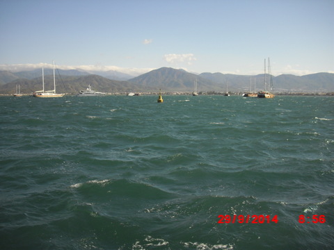 Selv inne i havnen i Fethye blåser det ganske så kraftig.